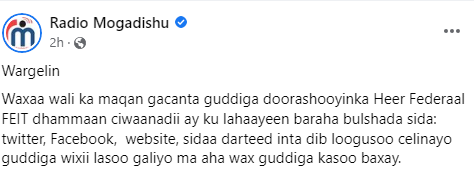 Warbaahinta dowladda Soomaaliya ayaa baahisay in guddiga doorashada heer federal uusan gacan ku heynin boggagii rasmiga ay ku lahaayeen baraha bulshada, sida uu baahiyay Radio Muqdisho.