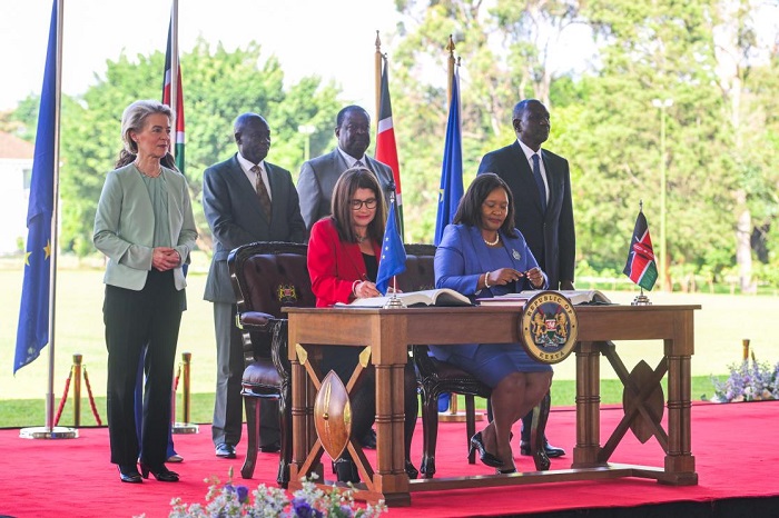 Is afgaradkan oo lagu saxiixay xarunta madaxtooyada State House ee magaalada Nairobi ayaa waxaa qalinka ku wada duugay wasiiradda wasaaradda ganacsiga ee dalka Rebecca Miano iyo safiirka Midowga Yurub ku matasho Kenya Henriette Geiger.
