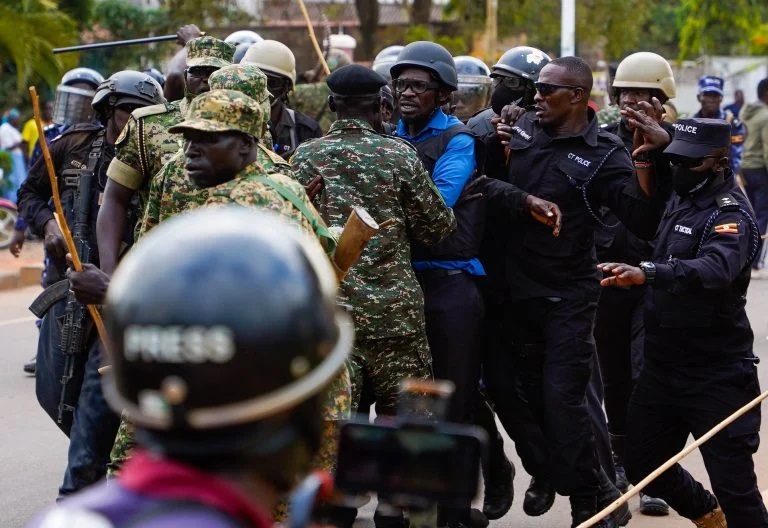 Horraantii, Al Jazeera ayaa werisay in sarkaal ka tirsan xibiga National Unity Platform uu u sheegay hay’adda in “rag u muuqday inay yihiin militariga iyo wakiillo kale oo amniga ah ay ka boodeen xayndaabka” guriga Wine.