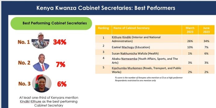 Ra’yi uruurin ay dhawaan sameysay shirkadda darasaadka ee TIFA ayaa lagu ogaaday in dhanka waxqabadka uu wasiirrada dowladda dhexe ugu horreeyo wasiirka wasaaradda arrimaha gudaha iyo maamulka qaran Prof. Kithure Kindki.