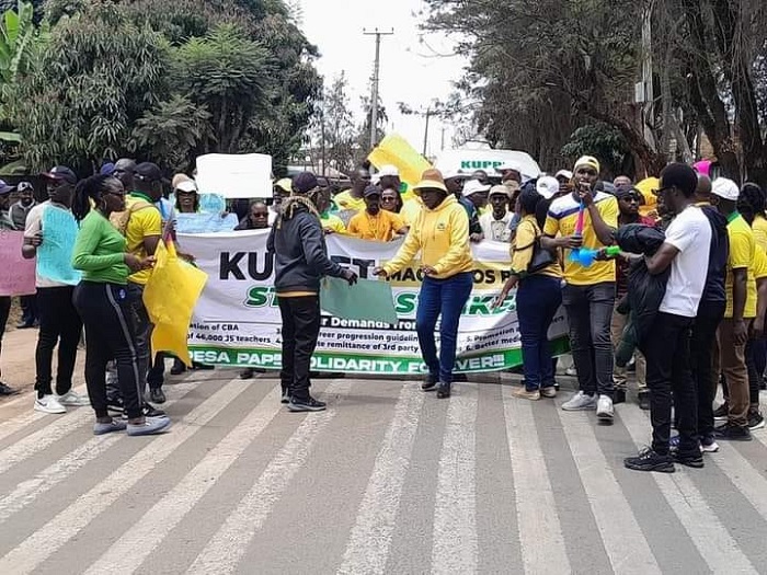 Macallimiinta dugsiyada hoose iyo kuwa sare ayaa dibadbax ka dhigay magaalada Machakos, iyagoo sheegay in dowladdu ay iska indha tirtay dalabaadkooda.