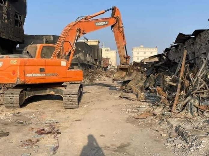 Waxaa suuqa lagu arkayay Gawaarida Cagafta iyo Baldoosyada oo qaadaya burburka iyo qashinka dhismayaasha dabku gubay si Ganacsatada Suuqa Waaheen qofki awooda uu dib ugu bilaabo Ganacsigigiisa.