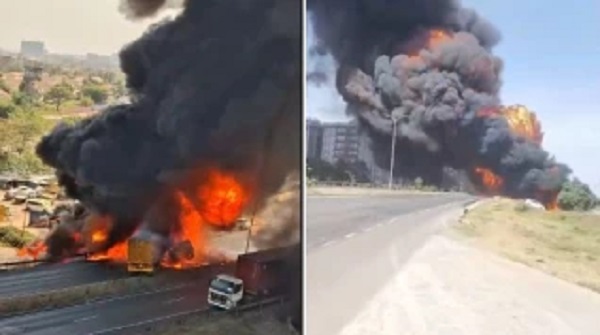 Gaari xamuul ah iyo booyad shidaal siday ayaa isku dhacay iyagoo maraya wadada Koonfurta Bypass meel u dhow Ram Residency Sabtida, maanta ah taasoo keentay in ay qaraxdo booyadda shidaalka waday.