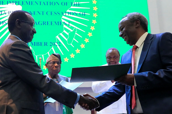 Heshiiskan waxaa saxiixay madaxa shaqaalaha ee ciidamada qalabka sida ee dowladda Itoobiya Berhanu Jula iyo dhigiisa TPLF Tadesse Worede.