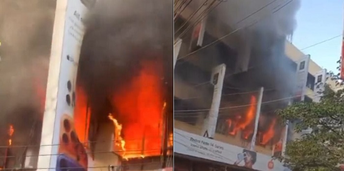 Dabka oo qabsaday dhismo ay ku yaallaan dhowr dukaan oo elegtarooniga ah, ayaa si caadi ah u istaagay howlihii shaqo ee ka socday waddada mashquulka badan ee CBD ee Nairobi.