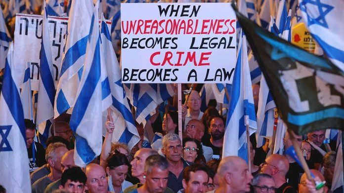 Kumanaan Israa’iiliyiin ah oo Banaanbax ka dhigay fagaaro ku yaala Tel Aviv.