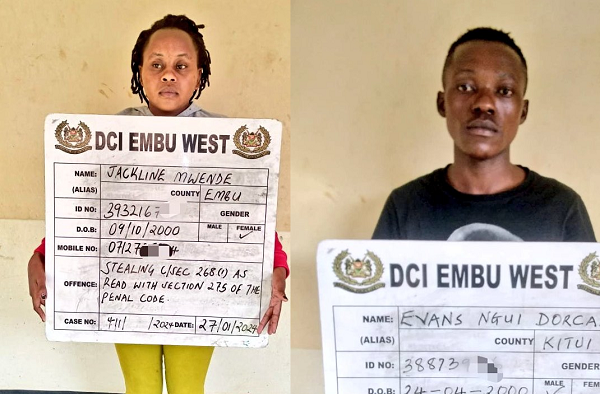 Waaxda dambi baarista dalka ee DCI-da ayaa sheegtay in xabsiga loo taxaabay labo qof oo lagu kala magacaabo Jackline Mwende iyo Evans Ngui.