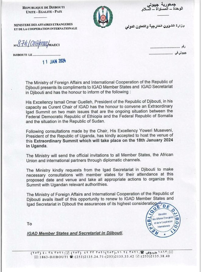 Madaxweynaha dalka Jabuuti Ismaaciil Cumar Geelle ayaa iclaamiyay shir degdeg ah oo ay isugu imaanayaan madaxda dalalka Urur goboleedka IGAD oo ay uga hadli doonaan xaaladaha ka soo cusboonaaday gobolka.