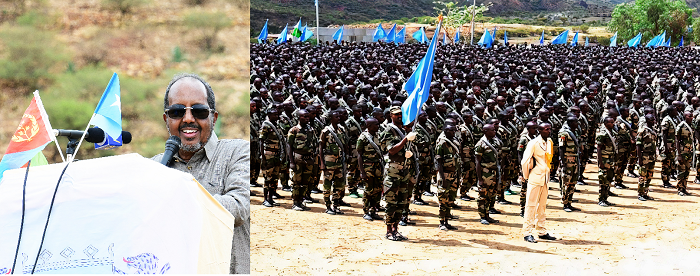 Madaxweynaha Soomaaliya Xasan Sheekh Maxamuud oo uu wehelinayo dhigiisa dalka Ereteria Isaias Afwerki ayaa kormeeray cutubyada Ciidanka Xoogga Dalka Soomaaliyeed ee tababarka u jooga dalkaasi.