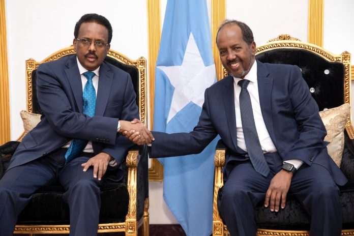 Madaxweynaha cusub ee Soomaaliya Xasan Sheekh Maxamuud iyo madaxweynaha xilka kasii degayo Maxamad Cabdullaahi Farmaajo ayaa maanta ku kulmay madaxtooyada, waxay ka wadahadleen arrimo ay kamid yihiin xaaladda guud ee dalka iyo arrimaha horumarka.