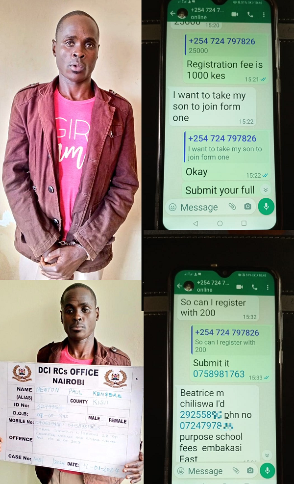 Saraakiisha waaxda dambi baarista ayaa tuhmanaha ka soo qabtay deegaanka hoose ee Riokindo Ward ee ismaamulka Kisii ka dib markii Mike Sonko uu cabasho arrinkan ku aaddan u gudbiyay saldhigga booliiska ee Capitol Hill .