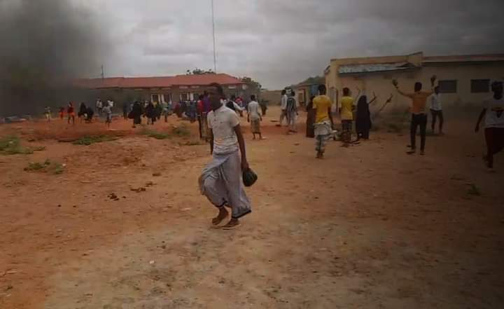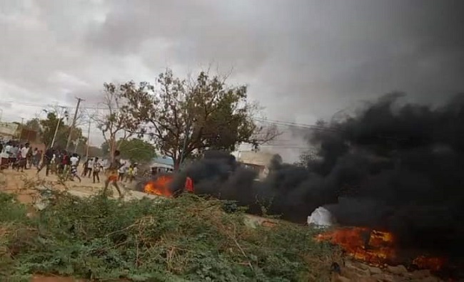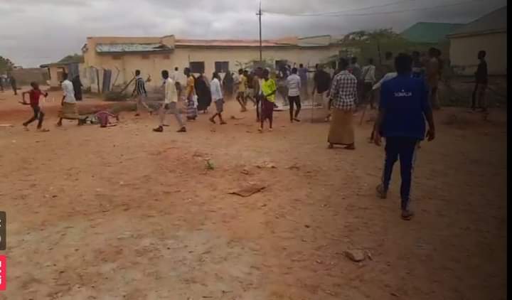 Dadka bannaanbaxa dhigayay ayaa taayaro iyo agab kale ku gubay bartamaha degmadaasi, iyaga oo sidoo kale gubay Xaruntii ay ku shaqeynayeen Maamulka degmada, waxaana Ciidamo ka tirsan kuwa NISA ay rasaas farabadan ku fureen dadka bannaanbaxa dhigayay, iyada oo ay ku dhaawacmeen rasaasta ilaa 3 qof.