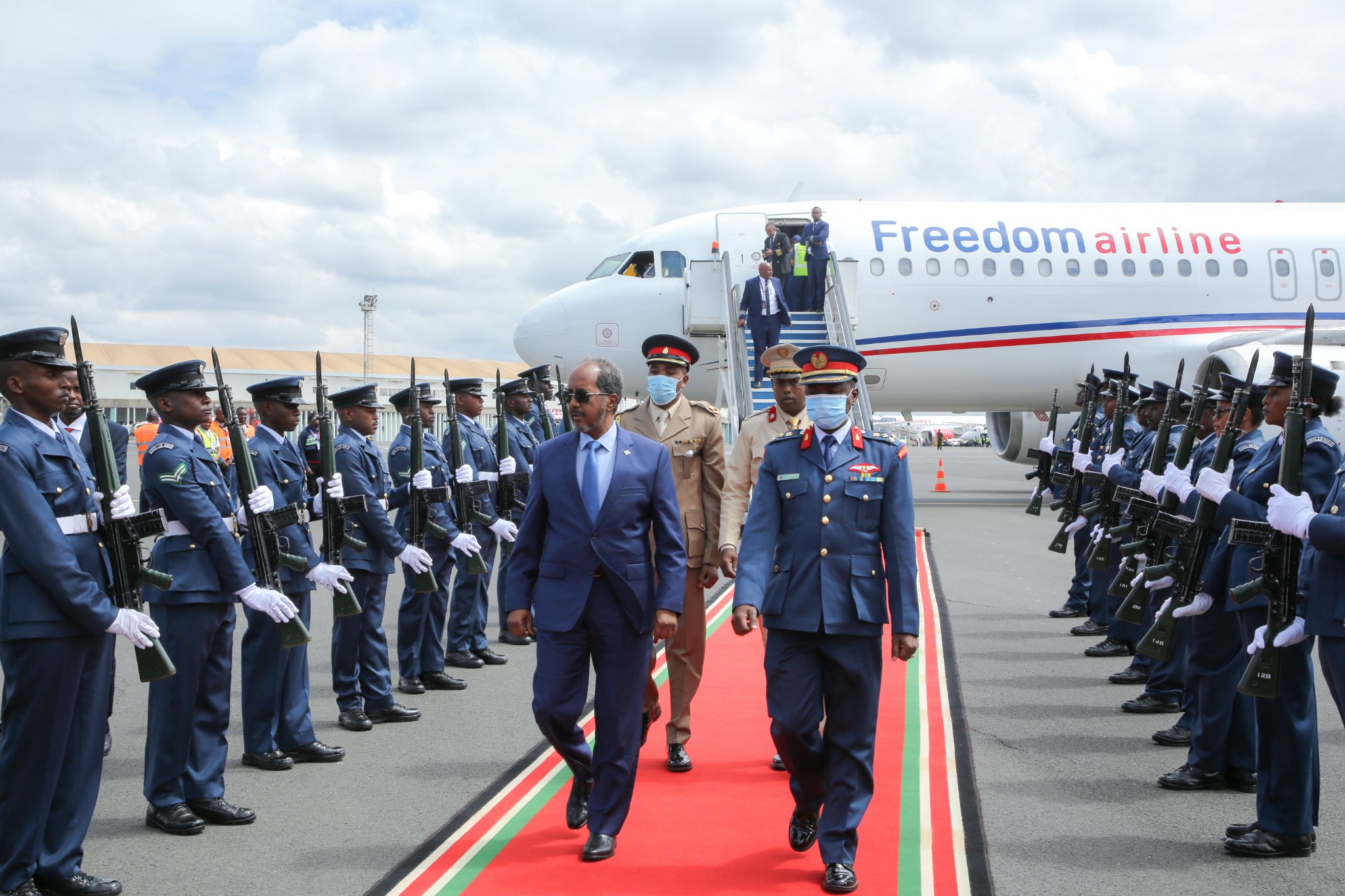Madaxweynaha dalka Soomaaliya Xasan Sheekh Maxamuud ayaa Kenya ku yimid safar qaadanaya saddex cisho.