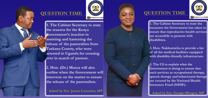 Speaker of the Senate @HonAmasonKingi registering his displeasure over failure of the three Cabinet Secretaries ,@DrAlfredMutua @susanwafula_cs and Florence Bore failure to appear before the Senate today morning to answer to various questions from Senators. pic.twitter.com/xjZHMQo6Ee