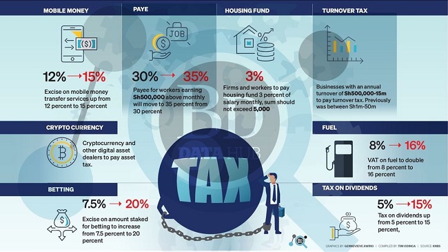 1-dii bishan ayay ahayd markii madaxweynaha dalka William Ruto uu sheegay in qof waliba oo shaqeeya bishii laga jaraya boqolkiiba 3 ee mushaarkiisa iyo si la mid ah shirkadda uu u shaqeeya.